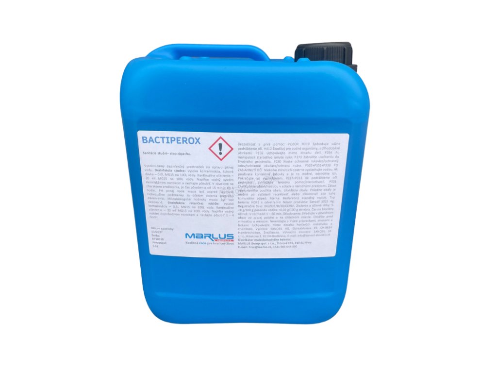 BACTIPEROX je vysokoúčinný dvojzložkový dezinfekčný prípravok určený na úpravu vody, dezinfekciu studní, potrubí, retenčných nádrží a povrchov. Eliminuje široké spektrum mikroorganizmov vrátane baktérií, vírusov, plesní, kvasiniek, spór, húb, rias aj Legionelly.