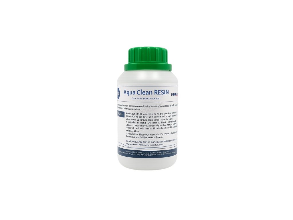 Aqua Clean RESIN je špeciálne vyvinutý prípravok určený na odstraňovanie nečistôt zo živicových vrstiev v iónomeničoch a zmäkčovačoch vody. Je založený na zmesi sekvestračných činidiel, ktoré účinne viažu a odstraňujú usadeniny železa a ďalších iónov, ktoré znižujú účinnosť živicových lôžok.