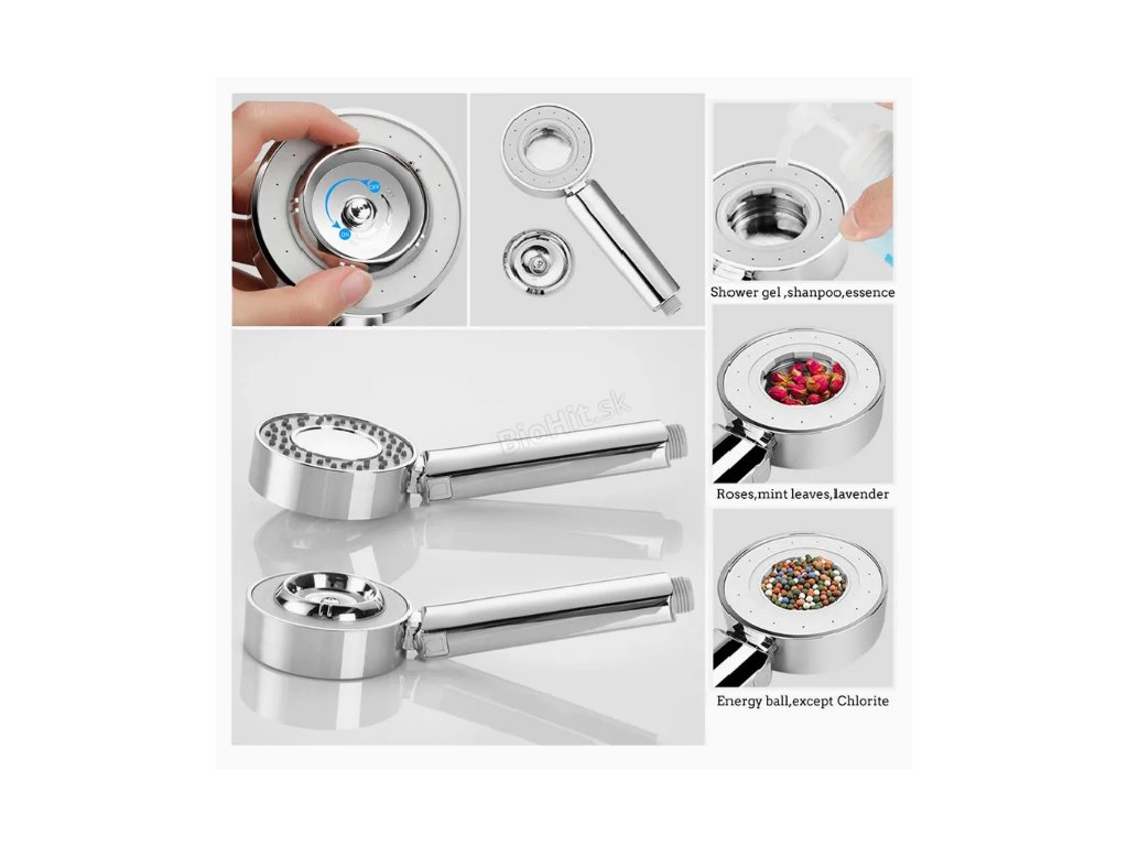 Puzdro na šampón a morskú soľ: Praktický otvor umožňuje pridanie šampónu alebo soli priamo do sprchy.