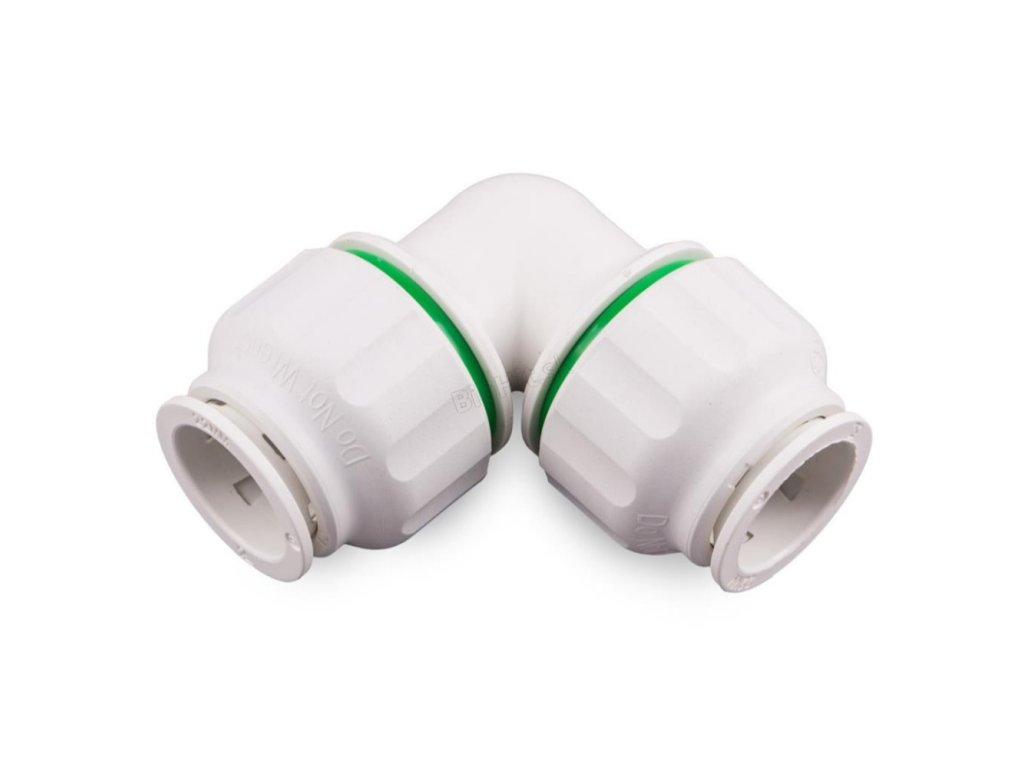 Plastové koleno Twistloc 22mm x 22mm – spoľahlivé zasúvacie spojenie pre vodu a kúrenie