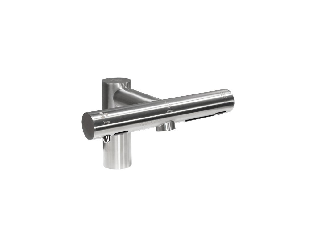Umožňuje kompletné umývanie rúk bez presunov – všetko prebieha priamo nad umývadlom a úplne bezdotykovo.